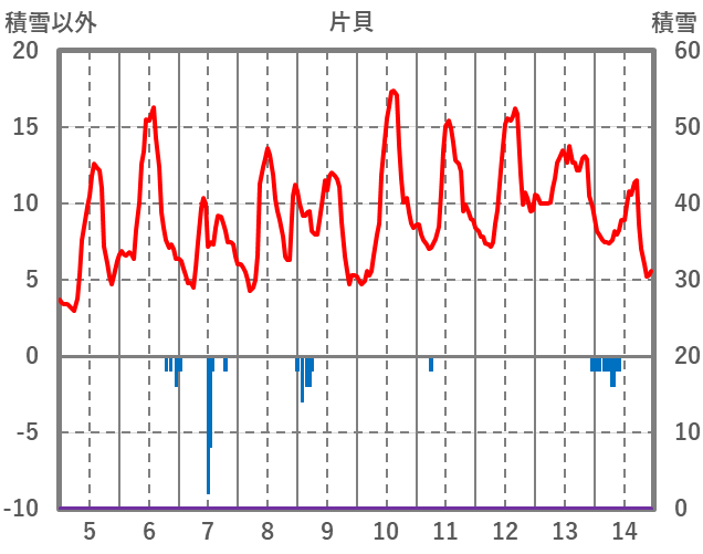 | 日 | 時 | 気温 | 降水 | 風向/風速 | 日照 | 積雪 | 降雪 |