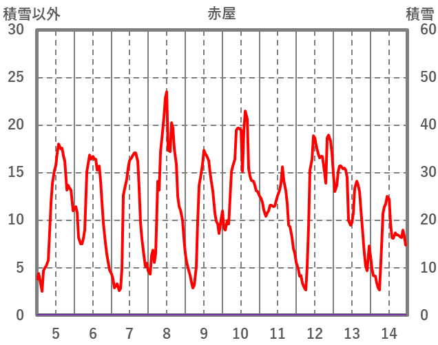| 日 | 時 | 気温 | 降水 | 風向/風速 | 日照 | 積雪 | 降雪 |