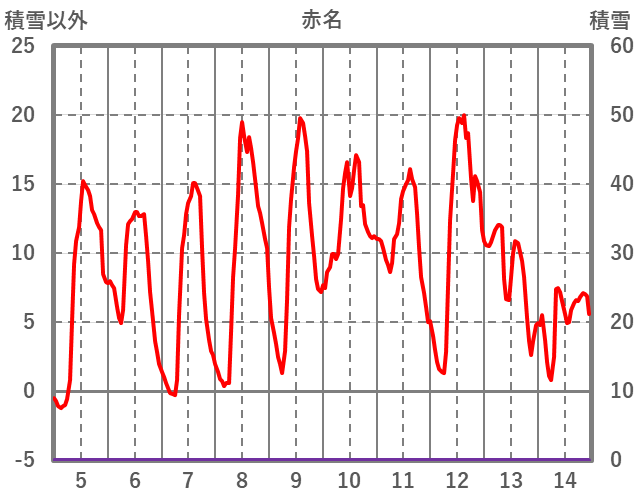 | 日 | 時 | 気温 | 降水 | 風向/風速 | 日照 | 積雪 | 降雪 |