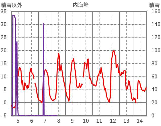 | 日 | 時 | 気温 | 降水 | 風向/風速 | 日照 | 積雪 | 降雪 |