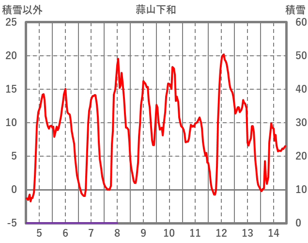 | 日 | 時 | 気温 | 降水 | 風向/風速 | 日照 | 積雪 | 降雪 |