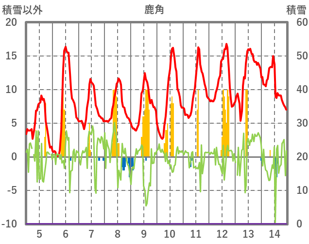 | 日 | 時 | 気温 | 降水 | 風向/風速 | 日照 | 積雪 | 降雪 |
