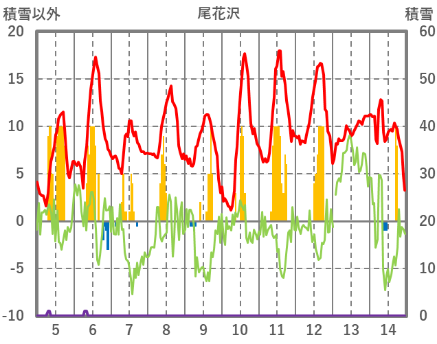| 日 | 時 | 気温 | 降水 | 風向/風速 | 日照 | 積雪 | 降雪 |
