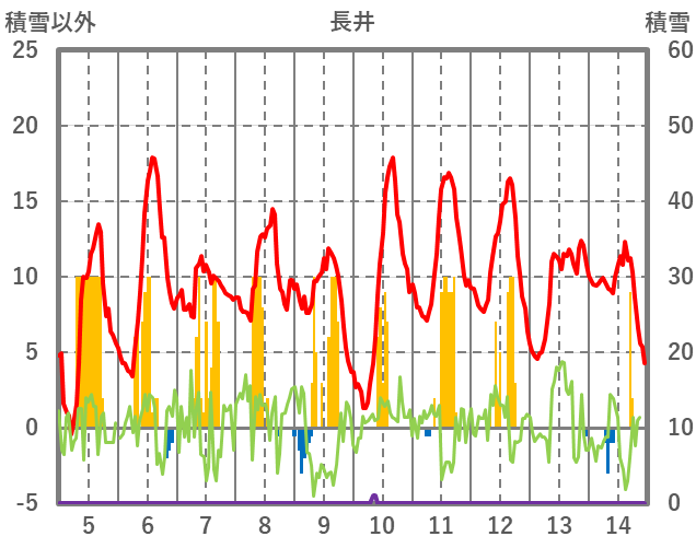 | 日 | 時 | 気温 | 降水 | 風向/風速 | 日照 | 積雪 | 降雪 |
