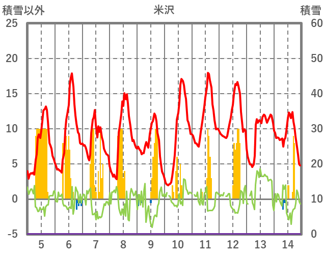 | 日 | 時 | 気温 | 降水 | 風向/風速 | 日照 | 積雪 | 降雪 |