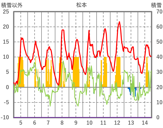 | 日 | 時 | 気温 | 降水 | 風向/風速 | 日照 | 積雪 | 降雪 |