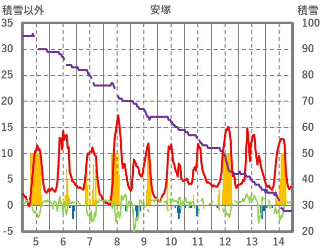 | 日 | 時 | 気温 | 降水 | 風向/風速 | 日照 | 積雪 | 降雪 |