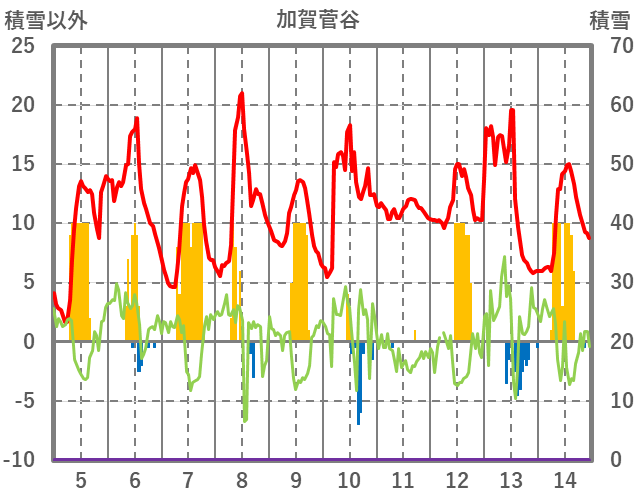 | 日 | 時 | 気温 | 降水 | 風向/風速 | 日照 | 積雪 | 降雪 |