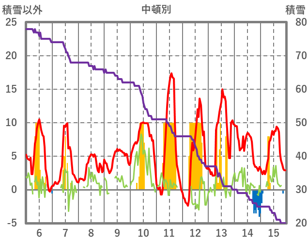 | 日 | 時 | 気温 | 降水 | 風向/風速 | 日照 | 積雪 | 降雪 |