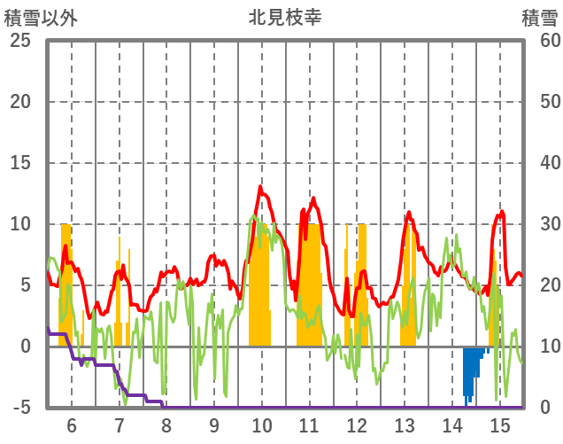 | 日 | 時 | 気温 | 降水 | 風向/風速 | 日照 | 積雪 | 降雪 |