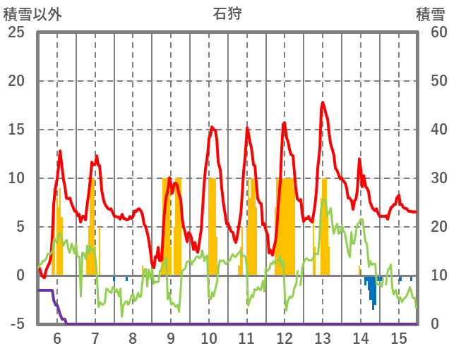 | 日 | 時 | 気温 | 降水 | 風向/風速 | 日照 | 積雪 | 降雪 |