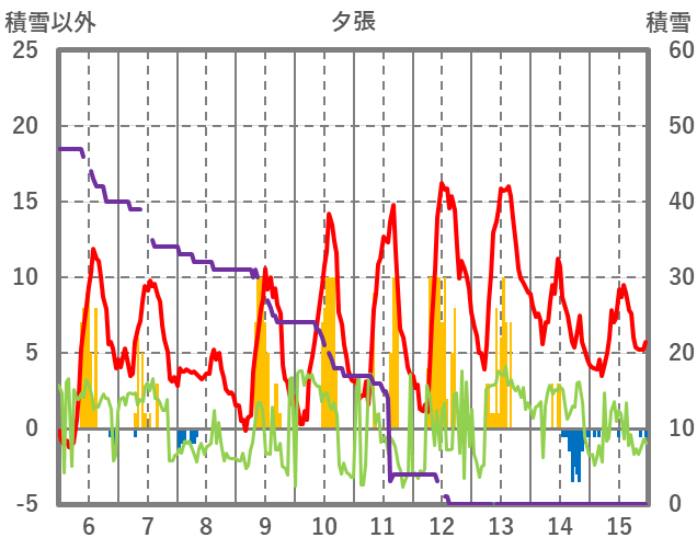 | 日 | 時 | 気温 | 降水 | 風向/風速 | 日照 | 積雪 | 降雪 |