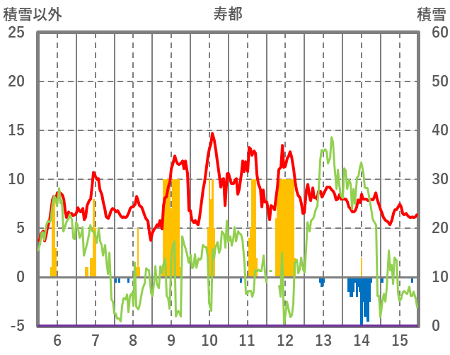 | 日 | 時 | 気温 | 降水 | 風向/風速 | 日照 | 積雪 | 降雪 |