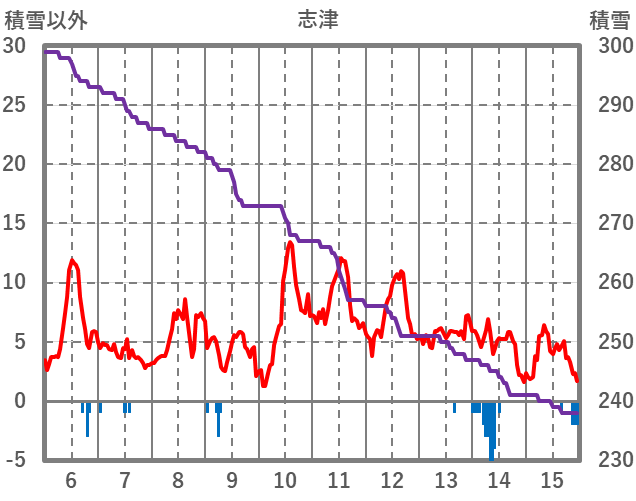 | 日 | 時 | 気温 | 降水 | 風向/風速 | 日照 | 積雪 | 降雪 |