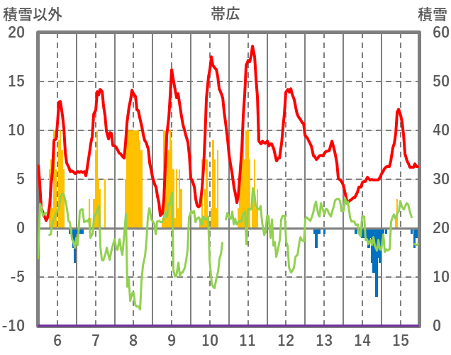 | 日 | 時 | 気温 | 降水 | 風向/風速 | 日照 | 積雪 | 降雪 |