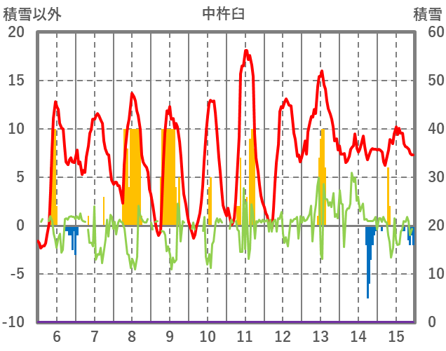 | 日 | 時 | 気温 | 降水 | 風向/風速 | 日照 | 積雪 | 降雪 |
