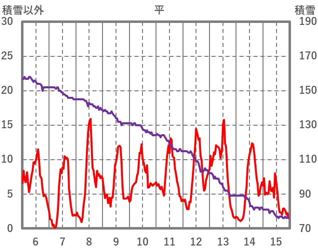 | 日 | 時 | 気温 | 降水 | 風向/風速 | 日照 | 積雪 | 降雪 |