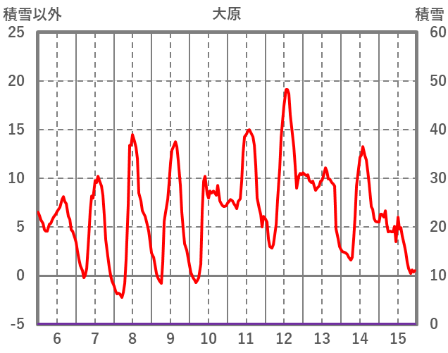 | 日 | 時 | 気温 | 降水 | 風向/風速 | 日照 | 積雪 | 降雪 |