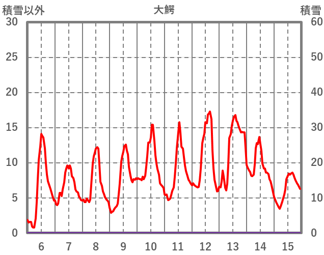 | 日 | 時 | 気温 | 降水 | 風向/風速 | 日照 | 積雪 | 降雪 |