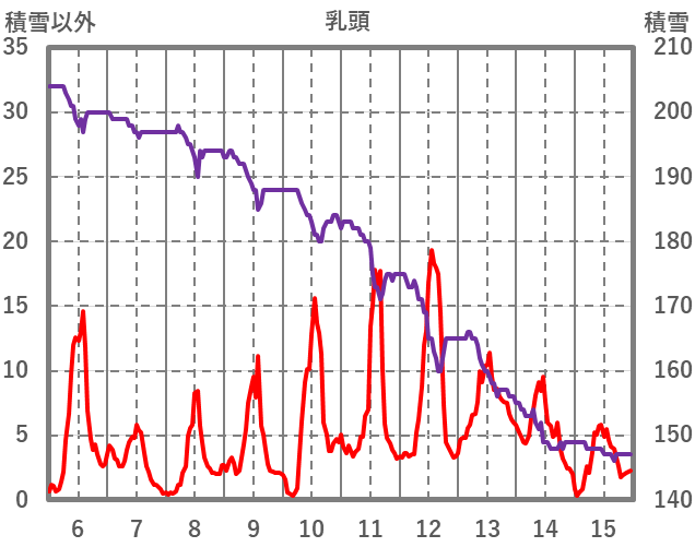 | 日 | 時 | 気温 | 降水 | 風向/風速 | 日照 | 積雪 | 降雪 |