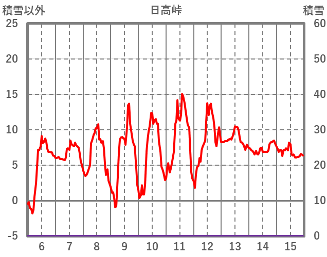 | 日 | 時 | 気温 | 降水 | 風向/風速 | 日照 | 積雪 | 降雪 |