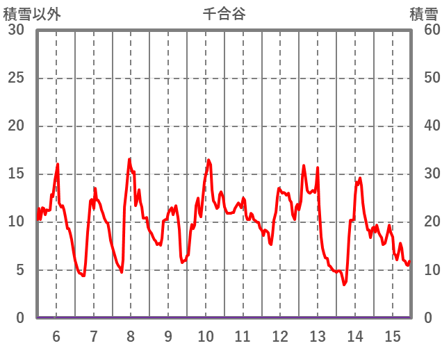 | 日 | 時 | 気温 | 降水 | 風向/風速 | 日照 | 積雪 | 降雪 |