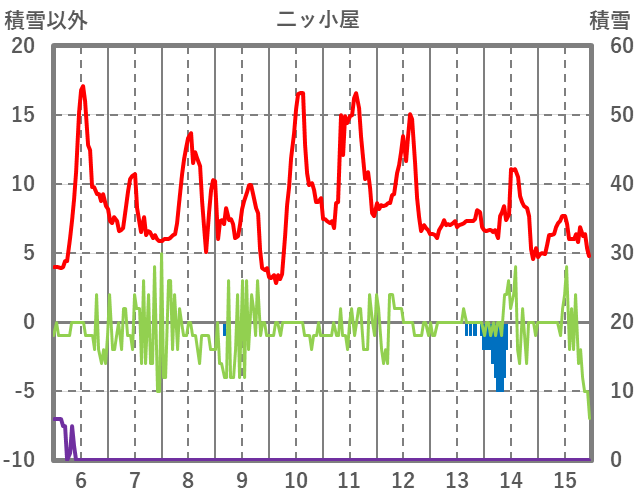 | 日 | 時 | 気温 | 降水 | 風向/風速 | 日照 | 積雪 | 降雪 |
