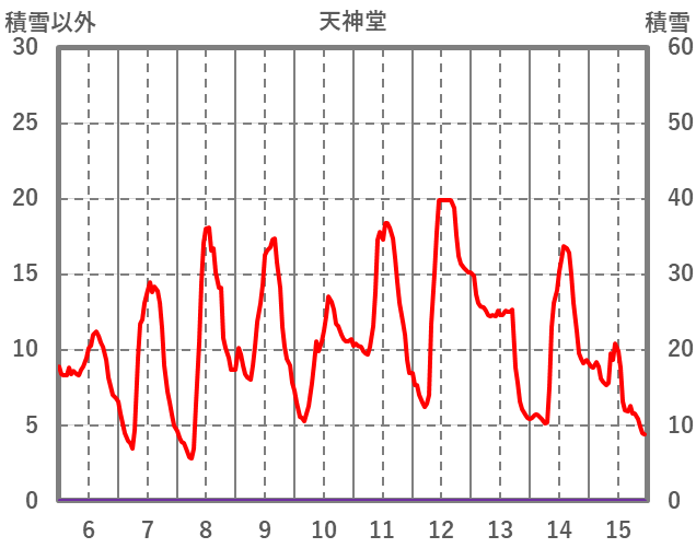 | 日 | 時 | 気温 | 降水 | 風向/風速 | 日照 | 積雪 | 降雪 |