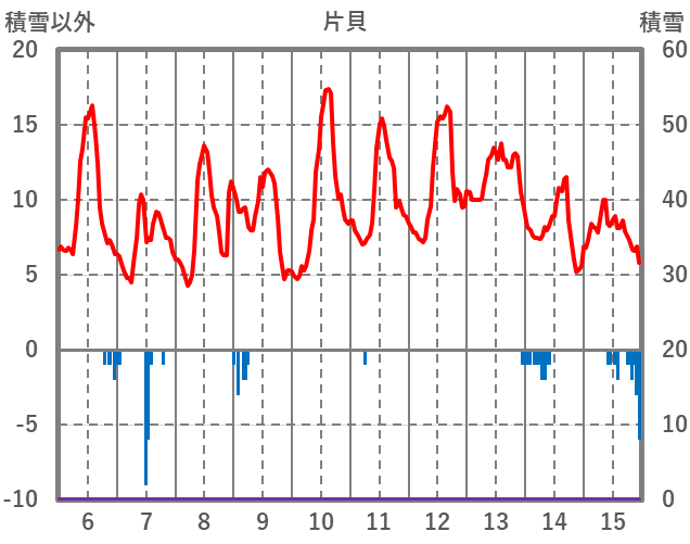 | 日 | 時 | 気温 | 降水 | 風向/風速 | 日照 | 積雪 | 降雪 |