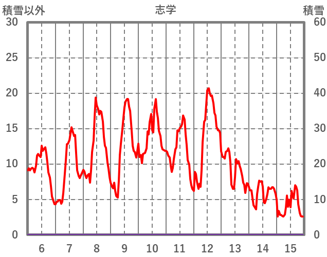 | 日 | 時 | 気温 | 降水 | 風向/風速 | 日照 | 積雪 | 降雪 |