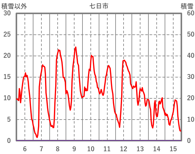 | 日 | 時 | 気温 | 降水 | 風向/風速 | 日照 | 積雪 | 降雪 |