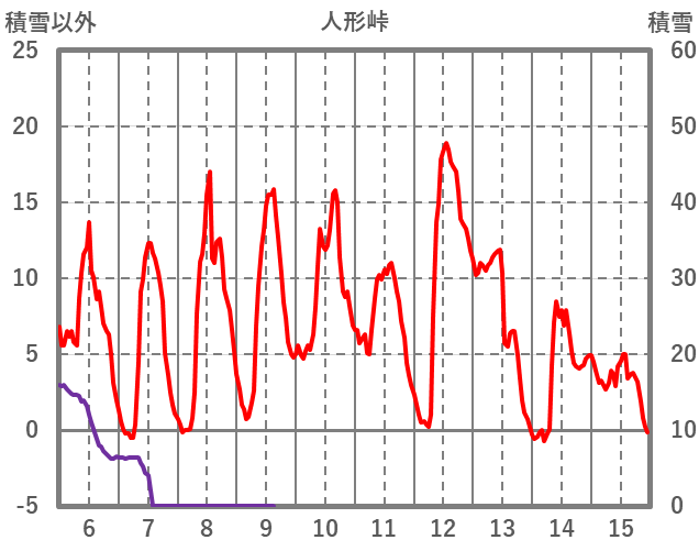 | 日 | 時 | 気温 | 降水 | 風向/風速 | 日照 | 積雪 | 降雪 |