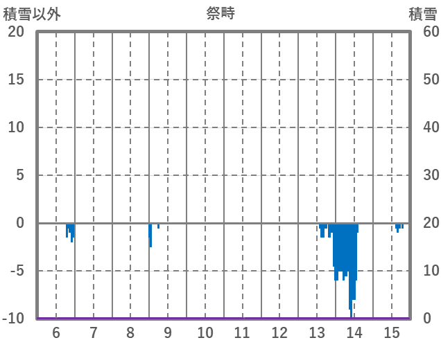 | 日 | 時 | 気温 | 降水 | 風向/風速 | 日照 | 積雪 | 降雪 |