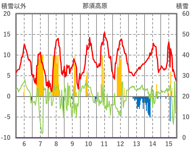 | 日 | 時 | 気温 | 降水 | 風向/風速 | 日照 | 積雪 | 降雪 |