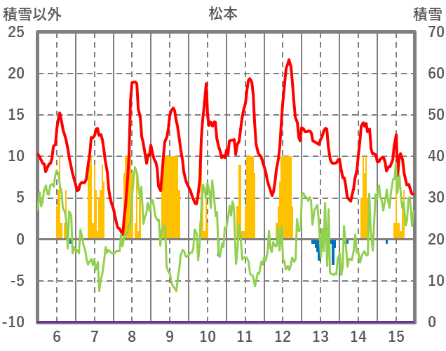 | 日 | 時 | 気温 | 降水 | 風向/風速 | 日照 | 積雪 | 降雪 |