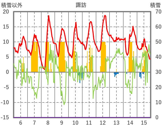 | 日 | 時 | 気温 | 降水 | 風向/風速 | 日照 | 積雪 | 降雪 |