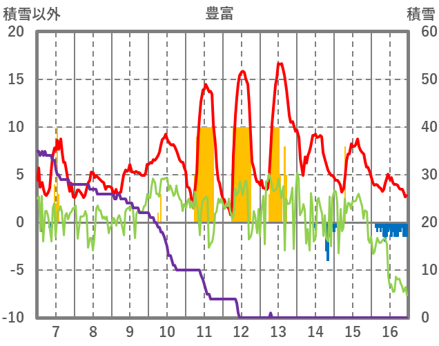 | 日 | 時 | 気温 | 降水 | 風向/風速 | 日照 | 積雪 | 降雪 |