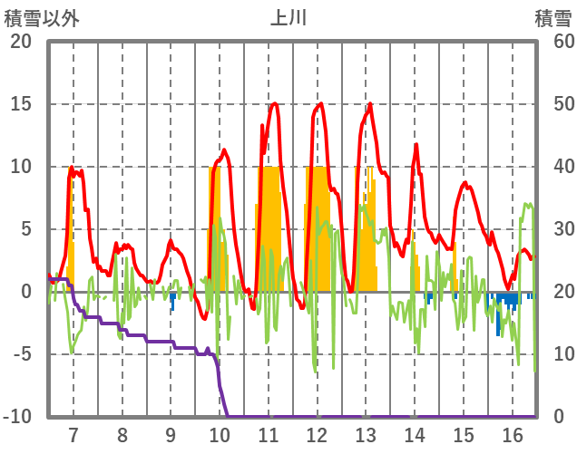 | 日 | 時 | 気温 | 降水 | 風向/風速 | 日照 | 積雪 | 降雪 |