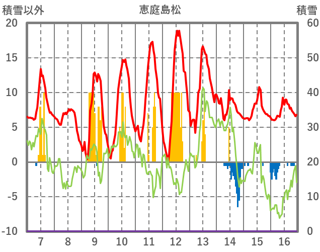 | 日 | 時 | 気温 | 降水 | 風向/風速 | 日照 | 積雪 | 降雪 |
