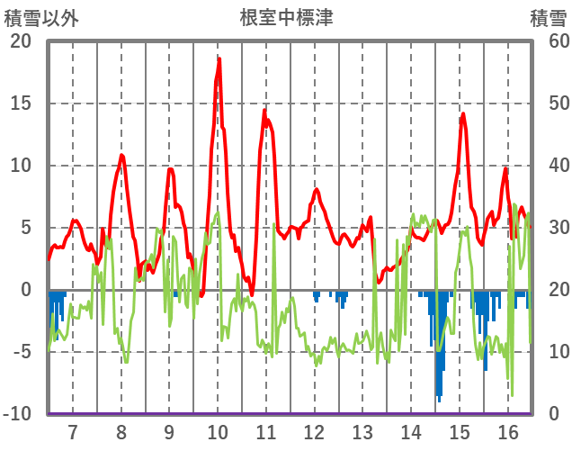| 日 | 時 | 気温 | 降水 | 風向/風速 | 日照 | 積雪 | 降雪 |