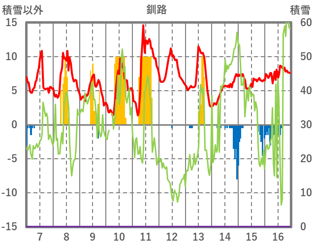 | 日 | 時 | 気温 | 降水 | 風向/風速 | 日照 | 積雪 | 降雪 |