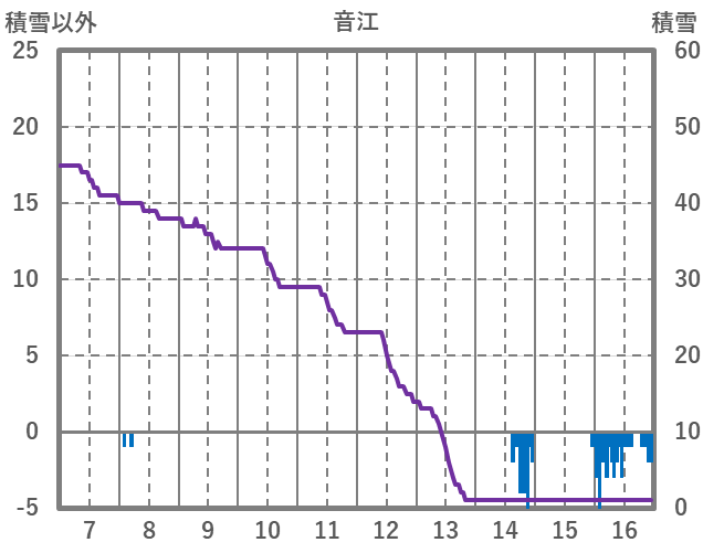 | 日 | 時 | 気温 | 降水 | 風向/風速 | 日照 | 積雪 | 降雪 |