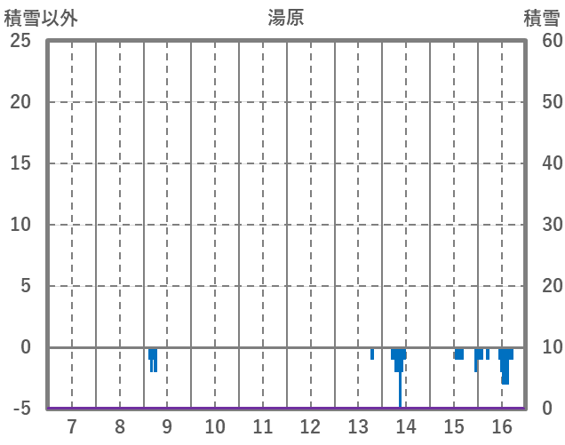 | 日 | 時 | 気温 | 降水 | 風向/風速 | 日照 | 積雪 | 降雪 |