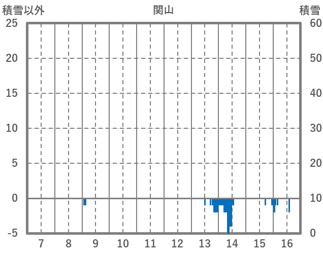 | 日 | 時 | 気温 | 降水 | 風向/風速 | 日照 | 積雪 | 降雪 |