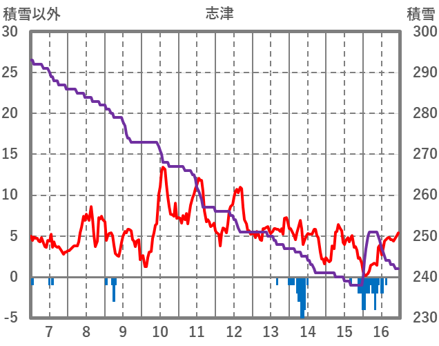 | 日 | 時 | 気温 | 降水 | 風向/風速 | 日照 | 積雪 | 降雪 |