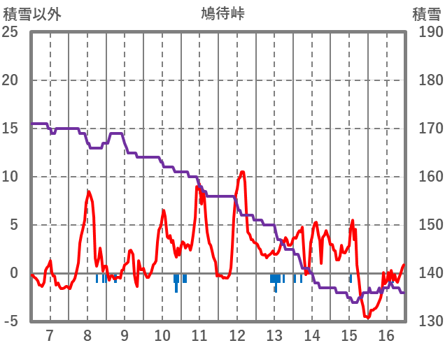 | 日 | 時 | 気温 | 降水 | 風向/風速 | 日照 | 積雪 | 降雪 |