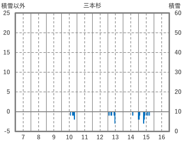 | 日 | 時 | 気温 | 降水 | 風向/風速 | 日照 | 積雪 | 降雪 |