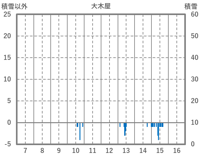 | 日 | 時 | 気温 | 降水 | 風向/風速 | 日照 | 積雪 | 降雪 |