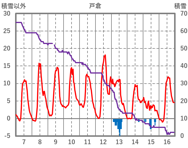 | 日 | 時 | 気温 | 降水 | 風向/風速 | 日照 | 積雪 | 降雪 |