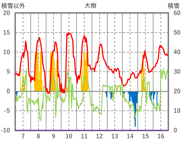 | 日 | 時 | 気温 | 降水 | 風向/風速 | 日照 | 積雪 | 降雪 |